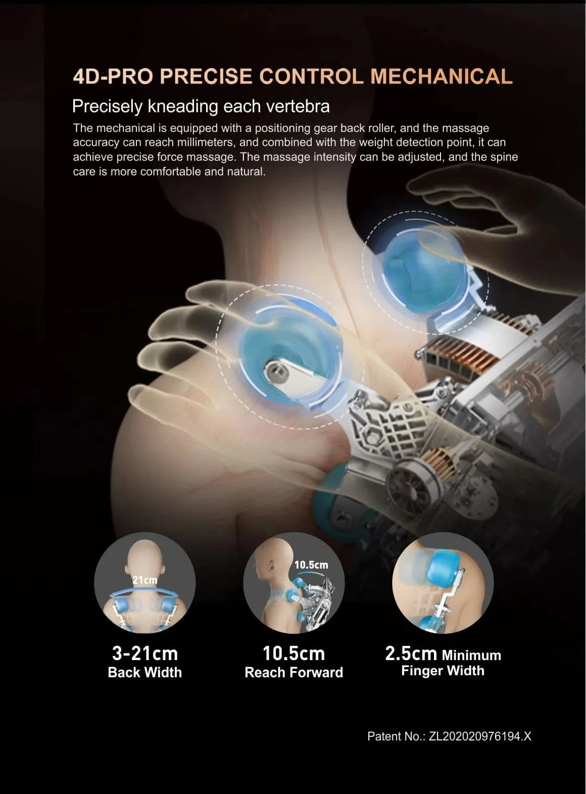 Say goodbye to neck and shoulder discomfort with the Neck & Shoulder Massage feature. Specially designed rollers target these problem areas, working their magic to alleviate stiffness and release built-up tension. Feel the knots dissolve as the chair's expertly calibrated motions provide a deeply satisfying and therapeutic experience.